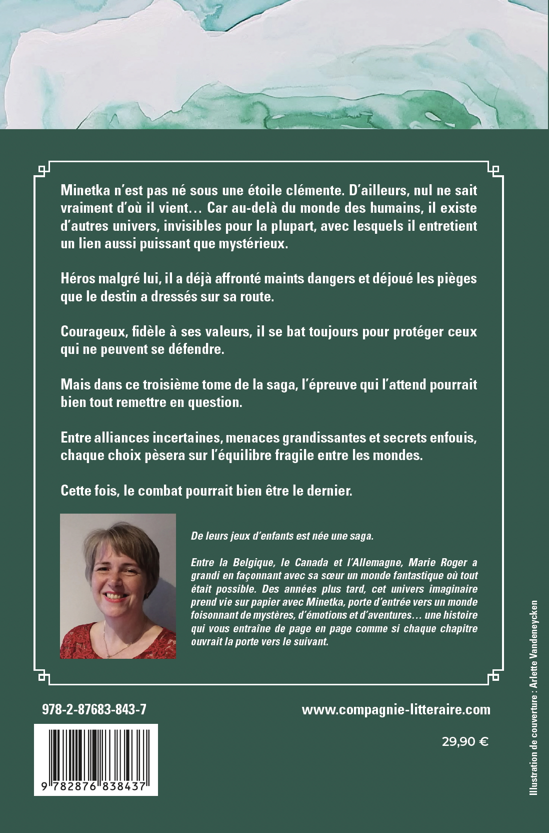 Entre la Belgique, le Canada et l’Allemagne, Marie Roger a grandi en façonnant avec sa soeur un monde fantastique où tout était possible. Des années plus tard, cet univers imaginaire prend vie sur papier avec Minetka, porte d’entrée vers un monde foisonnant de mystères, d’émotions et d’aventures… une histoire qui vous entraîne de page en page comme si chaque chapitre ouvrait la porte vers le suivant.